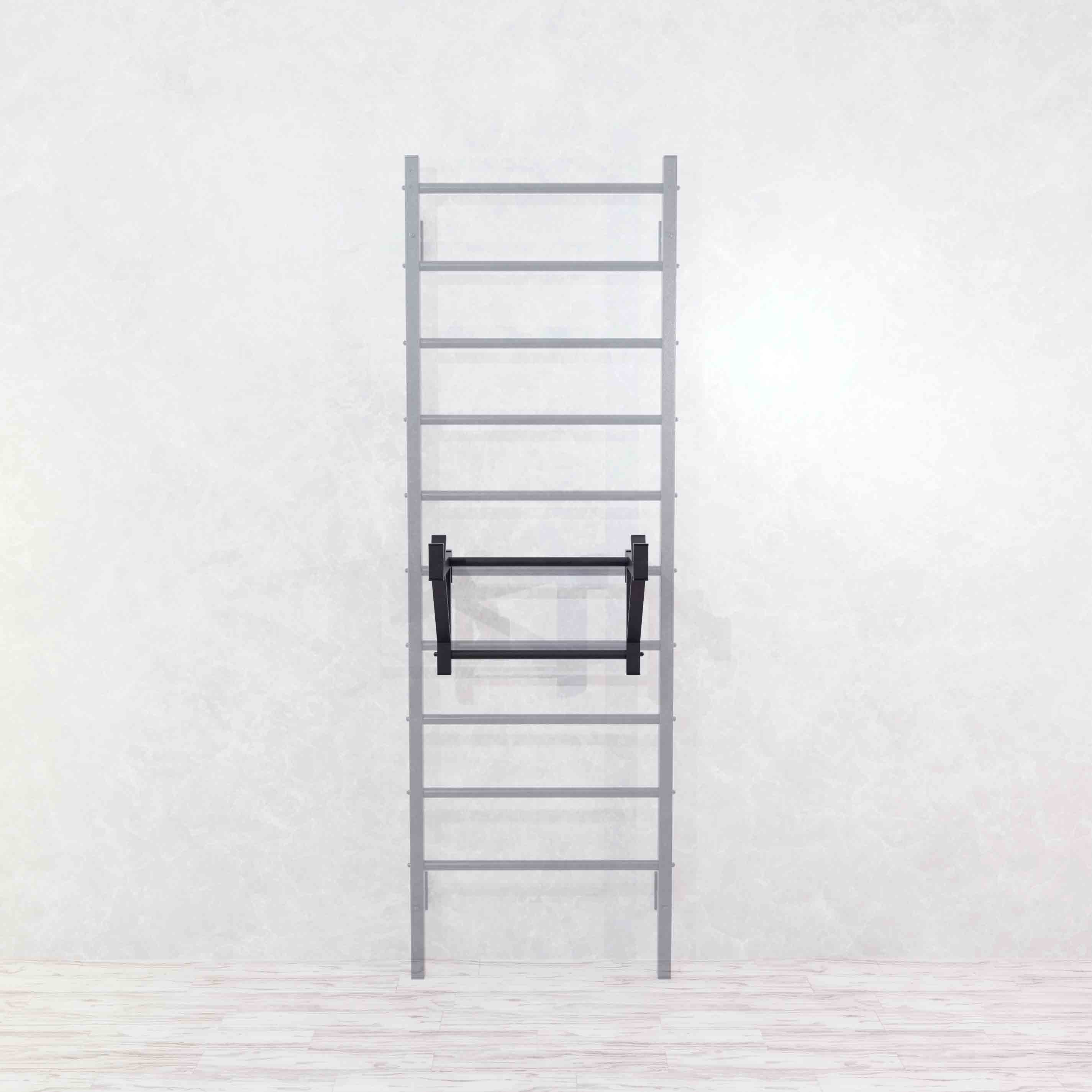 Стойка под штангу навесная на шведскую стенку имеет специальную конструкцию со сварным креплением в форме петли из мощного металлического профиля. Благодаря этому она выдерживает штанги до 150 кг.